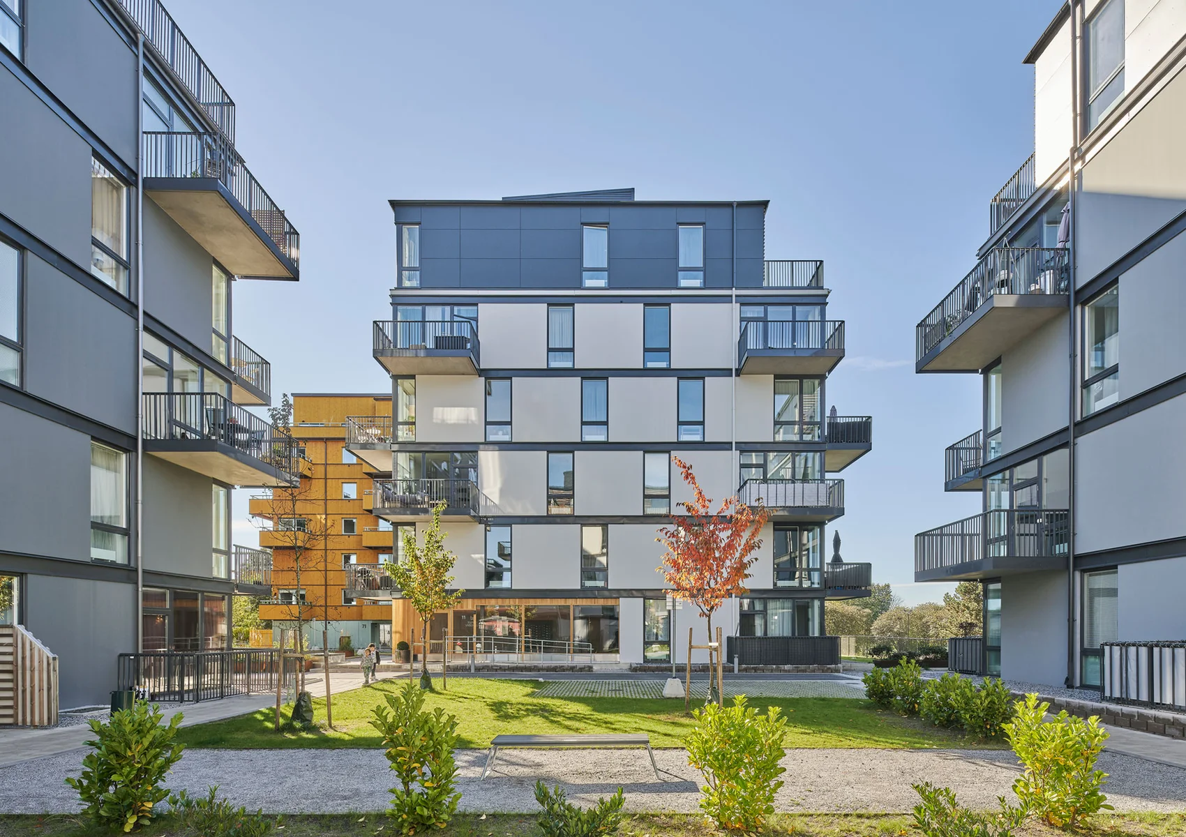 De olika innergårdarna rymmer sociala utomhusytor med sittplatser, plats för odling och en boulebana. Fastigheten inrymmer totalt 114 hyreslägenheter om 1–4 rum med kombinerat kök och vardagsrum samt en förskola för cirka 70 barn belägen i souterräng mot parken. Bostäderna stod klara för inflyttning i november 2020 och förskolan flyttade in under årsskiftet 2020/2021.